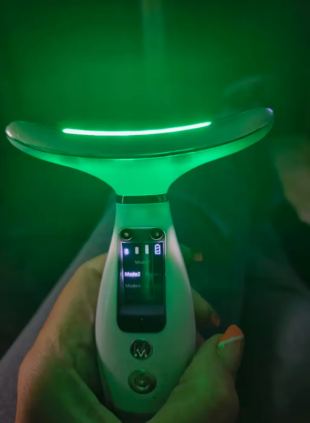 Firm and refresh your skin in minutes with soothing LED face and neck massage therapy.