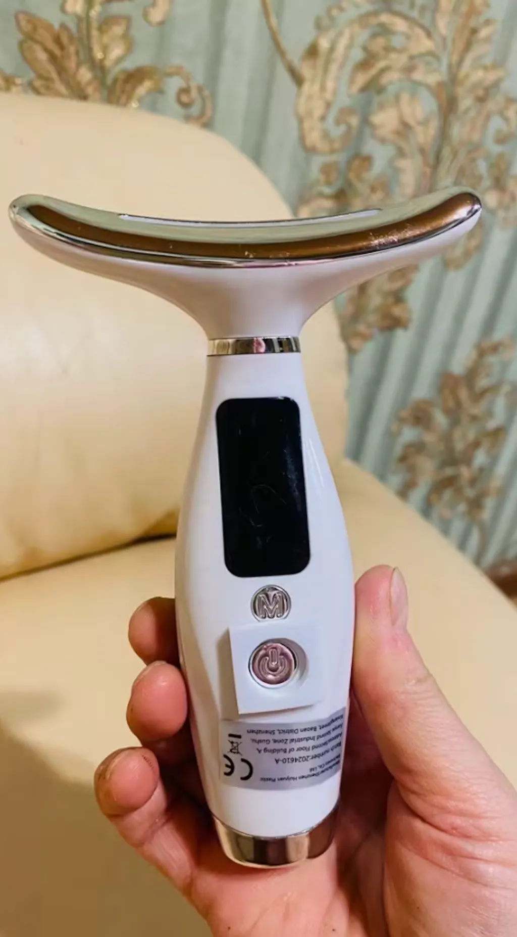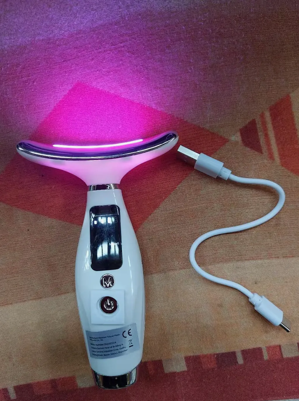 Note: This pattern matches usage instructions for many handheld neck beauty and lifting devices that feature gentle heat, vibration, and/or light therapy to enhance skin firmness and smoothness.